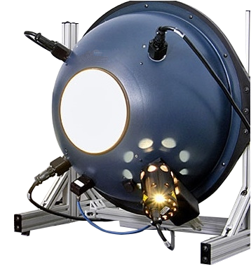 均勻光源系統(tǒng)的光源采用20秒爬升時間來增加使用壽命,相互匹配的燈泡色溫可以減少多個燈泡組合時產(chǎn)生的色溫變化,結(jié)實可靠的開口結(jié)構(gòu)使得待測樣品安裝簡單且可重復。系統(tǒng)包含所有的電器設(shè)備,相關(guān)設(shè)備安裝在球的框架上以便于移動。