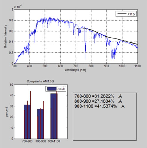和以前一樣,**終用戶只需要在**終結(jié)果中達(dá)到A級光譜匹配的太陽光譜的IR部分即可。太陽光譜的IR波長部分從700-1100nm提供。**終用戶要求輸出功率對應(yīng)于0.6太陽。因此,輻照度可以在0-0.6個(gè)太陽之間進(jìn)行至少10步的調(diào)整。