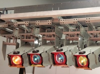 六個(gè)投影儀單元組件安裝在懸垂的架子上以進(jìn)行照明