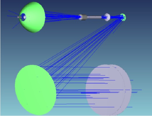 在**初的概念設(shè)計階段,制作了幾種不同的光線跟蹤模型來評估**有效的光學(xué)設(shè)計。找到光學(xué)元件的正確幾何位置還需要對光學(xué)設(shè)計進行幾處改動。進行了多次射線追蹤模擬,以評估準直度和輻照度分布。