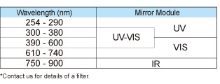| Mirror module | UV Type(250-385nm), UV-VIS Type(300-600nm), |